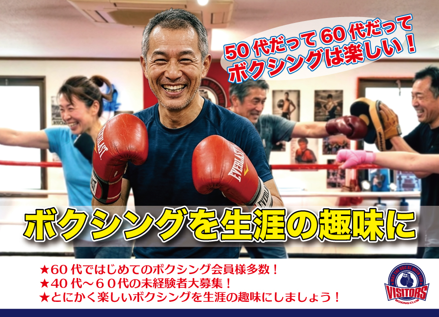 ビジターズボクシングクラブでは未経験者&初心者及び40~60代の方を中心にボクシングの楽しさを知っていただくためのパーソナルトレーニングを行っております。
